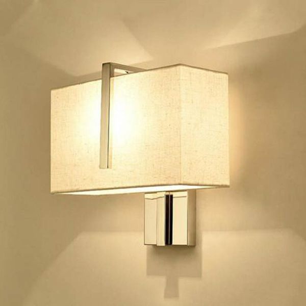 Grosshandel Edelstahl Beige Fabric Lampenschirm Led Wandleuchte Rechteck Hotel Bett Treppe Art Decor Led Wandleuchten Beleuchtungskorper Von Caraa