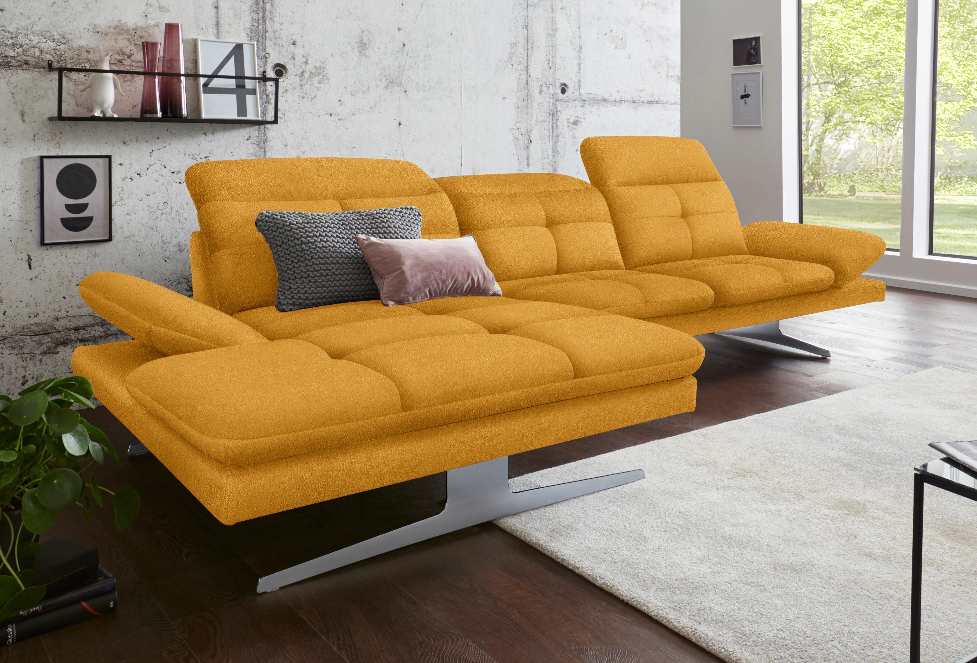 Interliving Sofa Serie 4050 Eckkombination Kurkumafarbenes Longlife Leder Cloudy Chromfusse Schenkelmass Ca 300 X 2