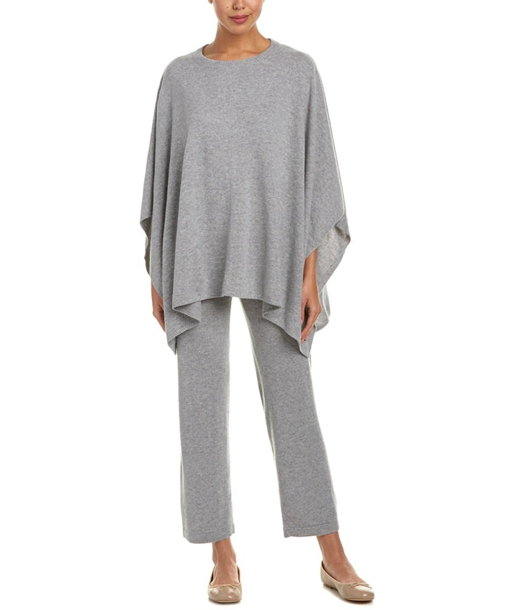 Sofia Cashmere 2pc Cashmere Poncho Pant Lounge Set In Grey